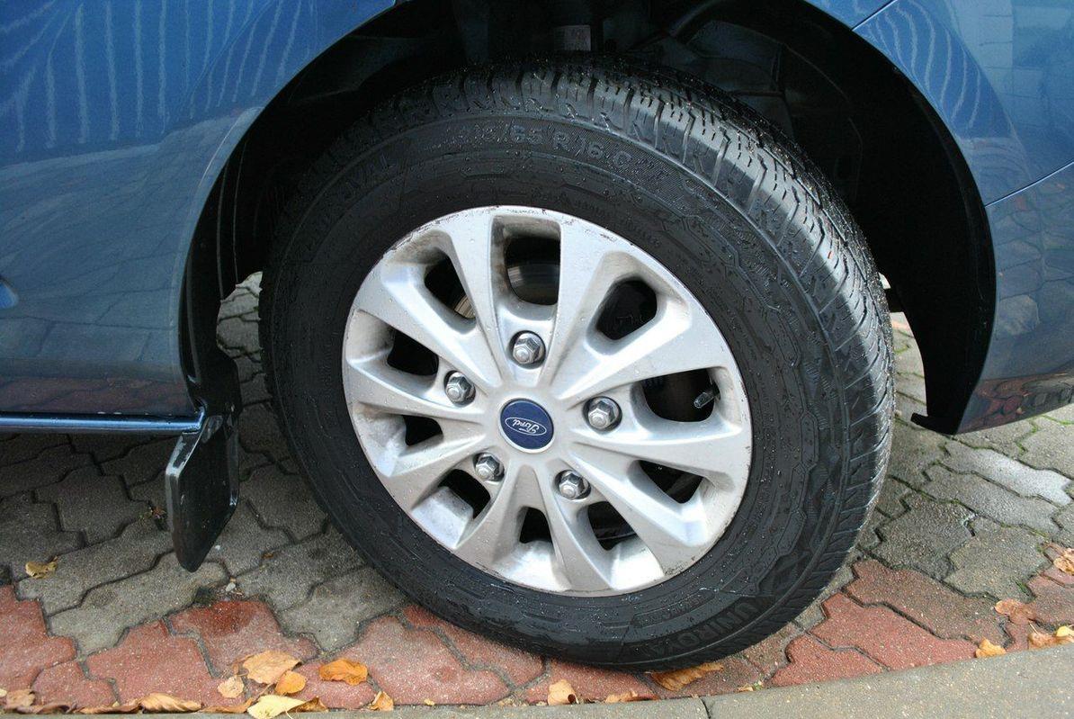 ABS, ESP Airbag kierowcy i pasażera Dodatkowe gniazdo 12V Drzwi przesuwne z prawej strony Drzwi tylne dwuskrzydłowe EBA – układ wspomagania awaryjnego hamowania EBW – funkcja ostrzegania o hamowaniu awaryjnym Elektryczne podnoszenie szyb ESC – elektroniczny układ stabilizacji toru jazdy HSA – system wspomagania ruszania pod górę Immobiliser PATS Klimatyzacja Kolumna kierownicy z regulacją położenia Schowki w przednich drzwiach System wlewu paliwa Ford Easy Fuel Halogenowe reflektory projektorowe ze światłami LED do jazdy dziennej i z przednimi światłami przeciwmgielnymi z funkcją doświetlania zakrętów TVC – system poprawiający stabilność na zakrętach Uchwyty do mocowania ładunku Uchwyty na kubki z przodu Wspomaganie układu kierowniczego Wykładzina przedziału ładunkowego Zamek centralny Czujniki parkowania – z przodu i z tyłu pojazdu Tempomat (zawiera kierownicę wykończoną skórą i regulowany ogranicznik prędkości) Pakiet poprawiający widoczność Premium: