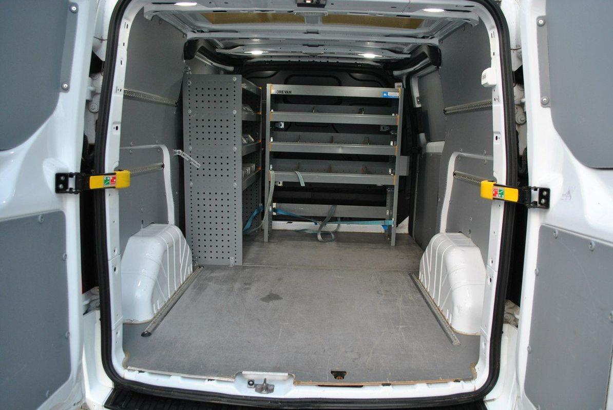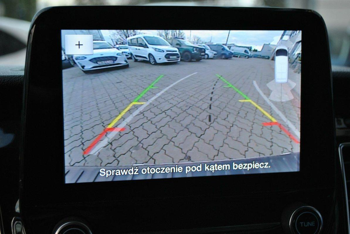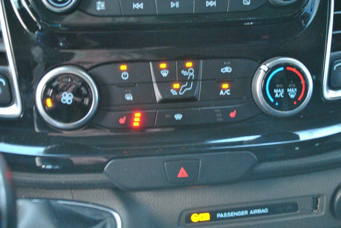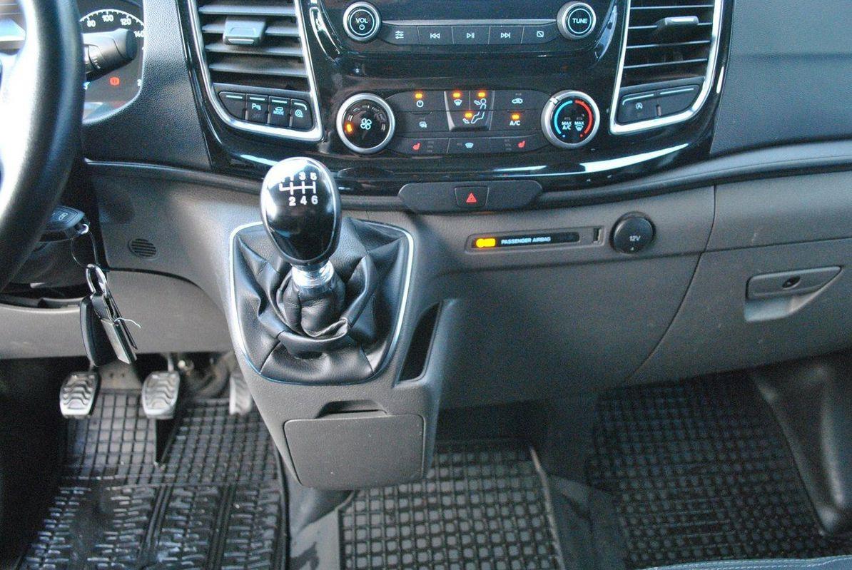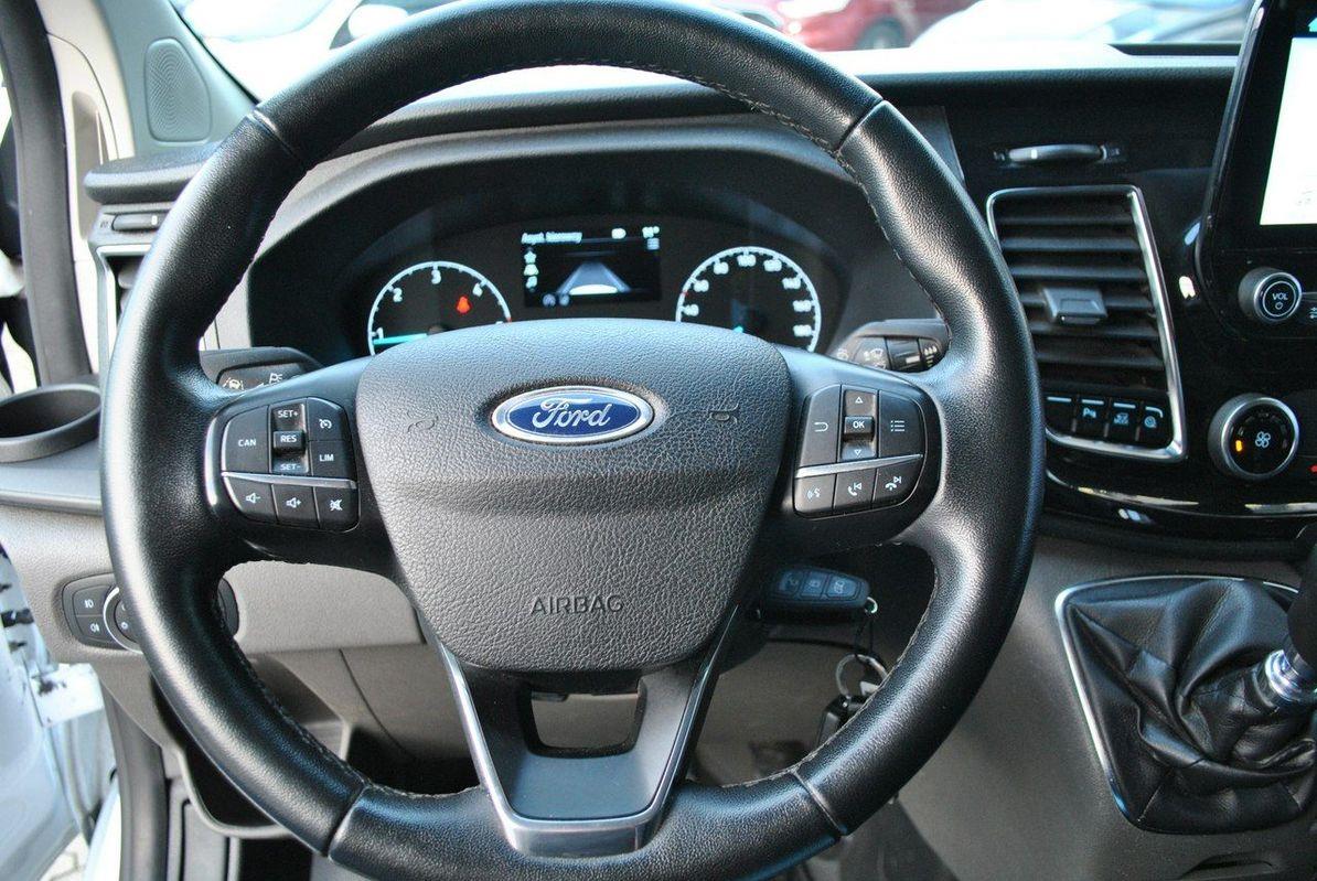 ABS, ESP Airbag kierowcy i pasażera Dodatkowe gniazdo 12V Drzwi przesuwne z prawej strony Drzwi tylne dwuskrzydłowe EBA – układ wspomagania awaryjnego hamowania EBW – funkcja ostrzegania o hamowaniu awaryjnym Elektryczne podnoszenie szyb ESC – elektroniczny układ stabilizacji toru jazdy HSA – system wspomagania ruszania pod górę Immobiliser PATS Klimatyzacja Kolumna kierownicy z regulacją położenia Schowki w przednich drzwiach System wlewu paliwa Ford Easy Fuel Biksenonowe reflektory ze światłami LED do jazdy dziennej i z przednimi światłami przeciwmgielnymi z funkcją doświetlania zakrętów TVC – system poprawiający stabilność na zakrętach Uchwyty do mocowania ładunku Uchwyty na kubki z przodu Wspomaganie układu kierowniczego Wykładzina przedziału ładunkowego Zamek centralny Czujniki parkowania – z przodu i z tyłu pojazdu Tempomat (zawiera kierownicę wykończoną skórą i regulowany ogranicznik prędkości) Automatyczne wycieraczki z czujnikiem deszczu System monitorowania koncentracji kierowcy System automatycznej zmiany świateł drogowych na mijania System ostrzegania przed niezamierzonym zjechaniem z pasa ruchu Elektrycznie ogrzewana przednia szyba Czujnik poziomu płynu spryskiwacza Automatycznie włączane światła 16-calowe aluminiowe obręcze kół Elektrycznie regulowane, podgrzewane i składane lusterka boczne z obudowami w kolorze nadwozia Podgrzewane przednie fotele Uchwyt dźwigni zmiany biegów pokryty skórą Poduszka powietrzna pasażera z wyłącznikiem Schowek podręczny zamykany na klucz Kolorowy wyświetlacz dotykowy 8", rozbudowany zintegrowany panel sterowania, funkcja wzywania pomocy Emergency Assistance*, Bluetooth® ze sterowaniem głosowym, AppLink®, Android Auto i Apple CarPlay, funkcja odczytywania wiadomości tekstowych, złącze USB z funkcją obsługi odtwarzaczy iPod®, sterowanie systemem audio z kierownicy, 4 głośniki z przodu Kamera ułatwiająca parkowanie tyłem Zabudowa warsztatowa