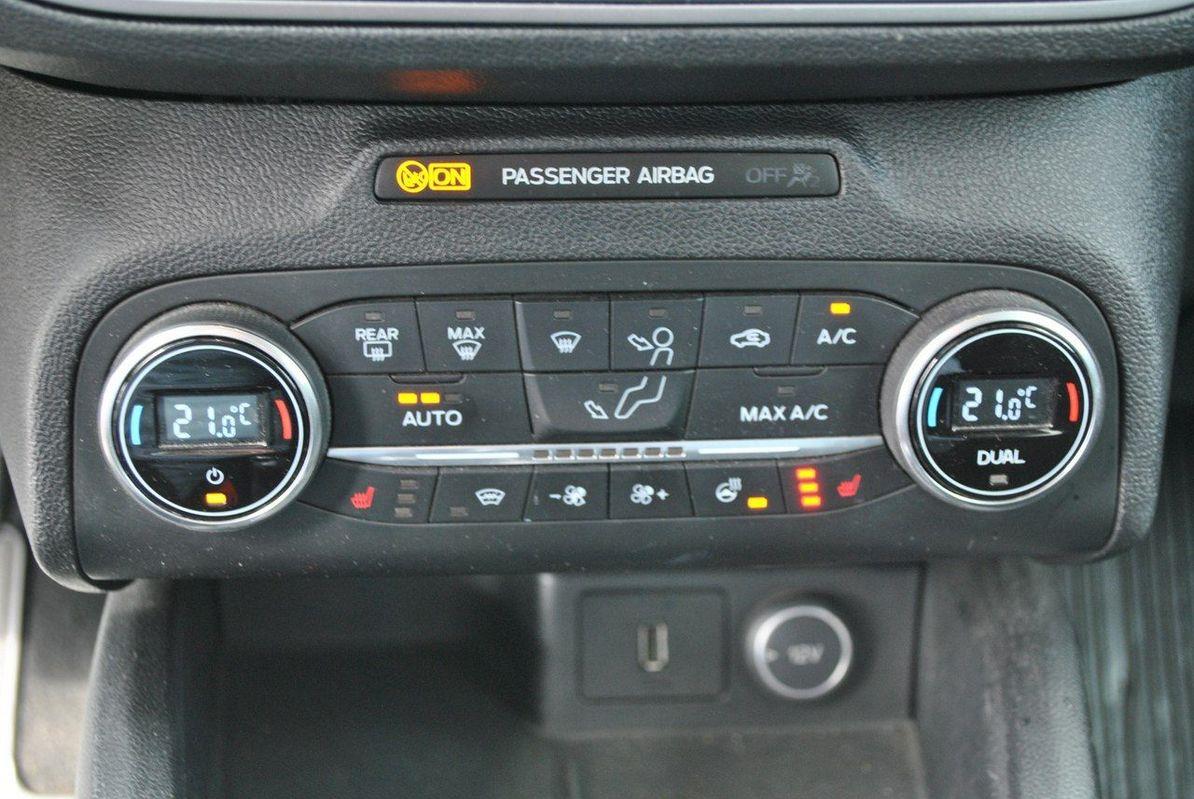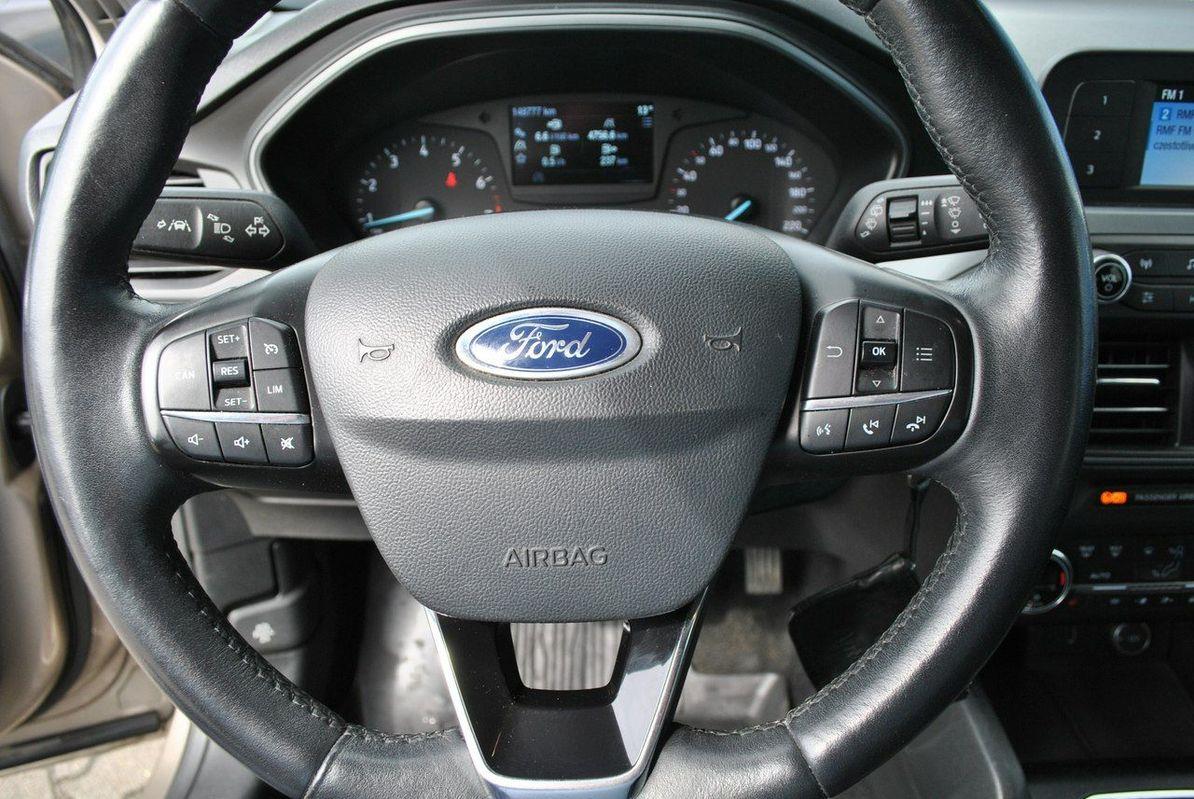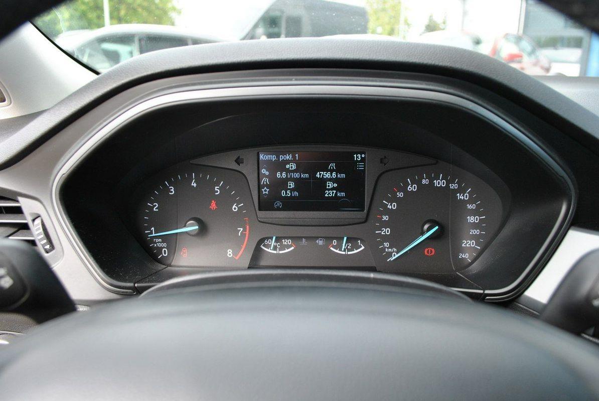 Układ kierowniczy ze wspomaganiem elektrycznym Elektrycznie regulowane i podgrzewane lusterka boczne Światła do jazdy dziennej w technologii LED System Ford EasyFuel System Pre-Collision Assist z systemem aktywnego hamowania Inteligentny ogranicznik prędkości 3-ramienna kierownica i uchwyt dźwigni zmiany biegów wykończone skórą Zamek centralny ze zdalnym sterowaniem Elektrycznie sterowane szyby przednich i tylnych drzwi System Ford MyKey System monitorowania ciśnienia w oponach 16" obręcze kół Radioodtwarzacz MyConnection zawiera: kolorowy wyświetlacz 4.2", zestaw głośnomówiący z Bluetooth, USB, 6 głośników, zdalne sterowanie na kierownicy Przednie fotele w stylu sportowym Elektryczny hamulec postojowy z funkcją Auto Hold Przednie światła przeciwmgielne ze światłami doświetlającymi zakręty Tempomat Klimatyzacja dwustrefowa z automatyczną regulacją temperatury (DEATC) Reflektory automatyczne Pakiet Winter Przednia szyba podgrzewana (Quickclear) Podgrzewane dysze spryskiwaczy Podgrzewane przednie fotele Podgrzewana kierownica Czujniki parkowania - tył Lakier metalizowany