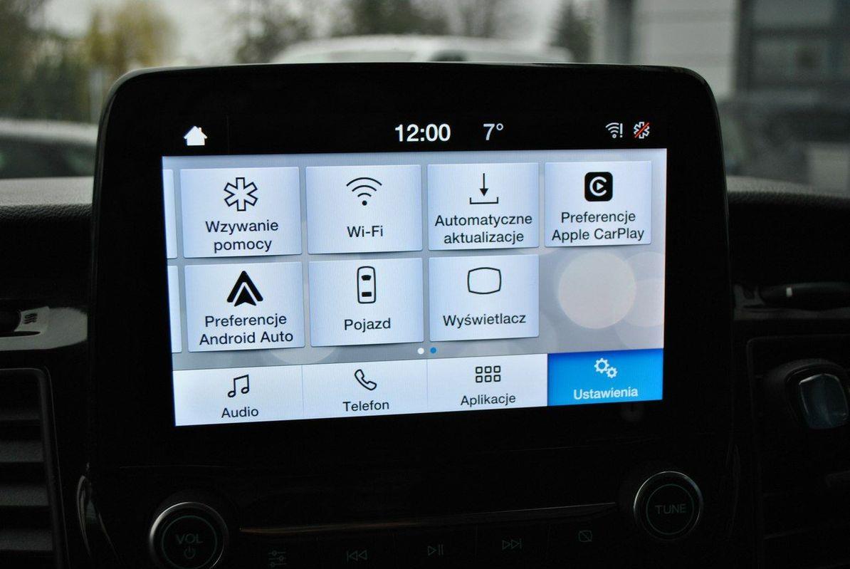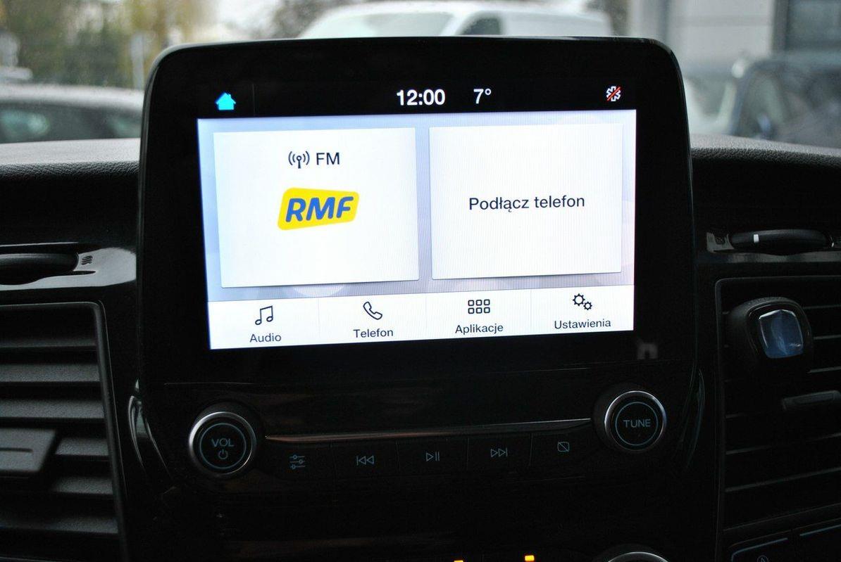 - Tapicerka skórzana Salerno Radioodtwarzacz z Ford SYNC 2.5 z radiem cyfrowym (DAB+) zawiera: kolorowy wyświetlacz dotykowy 8", zintegrowany panel sterowania, funkcja wzywania pomocy Emergency Assistance, Bluetooth®, AppLink®, Android Auto i Apple CarPlay, gniazdo USB, sterowanie systemem audio z kierownicy, 6 głośników Kamera cofania. Zawiera: zewnętrzne, tylne oświetlenie LED – wysokomontowane Reflektory biksenonowe ze światłami do jazdy dziennej LED i funkcją statycznego doświetlania zakrętów Hak holowniczy z system stabilizacji przyczepy (TSC) z 13-pinowym gniazdkiem Zabudowa warsztatowa